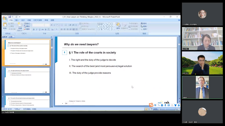 教授Thomas M. J. Möllers(托马斯·M. J. 默勒斯)主讲,以“法律人如何思考”为主题,开展了一场两个小时的线上学术讲座,讲座由蓝鲸直播