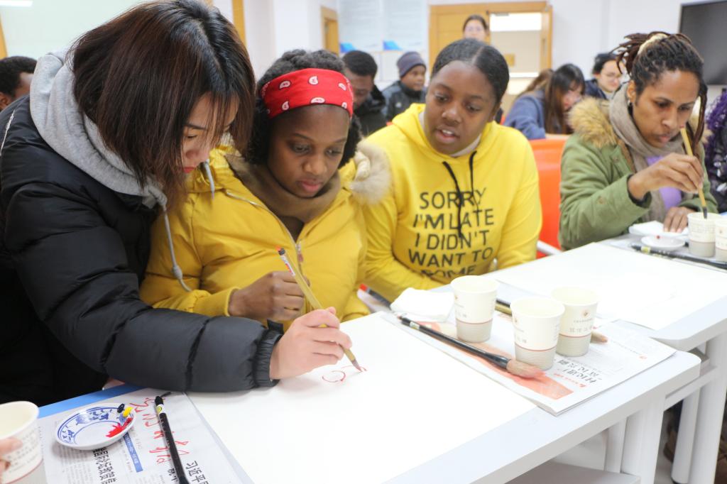 来自津巴布韦的ASHLEY不太会使用毛笔,但也在老师的帮助下成功画出了莲花,这让他很感动。牙买加的CODLING在绘画中还充分品味了《爱莲说》所要表达的内容,感慨中国清廉文化和传统文化的博大精深,同时作为一名法学生,她更加明白自己所肩负的责任。